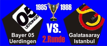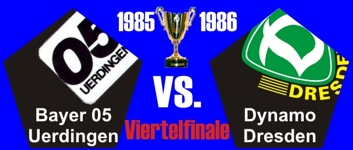 Dort kam es dann zum später legendären deutsch-deutschen Duell mit dem Pokalsieger aus der DDR – Dynamo Dresden. In den Reihen der Dresdener von Trainer Klaus Sammer standen Spieler wie Matthias Sammer, Ulf Kirsten, Dixi Dörner, Ralf Minge oder Frank Lippmann. Das Hinspiel in Dresden (40.000 Zuschauer, darunter ca. 300 Schlachtenbummler aus Uerdingen) ging mit 2:0 an die Elbstädter, so dass es für das Rückspiel recht eng wurde. Aufgrund des Hinspielergebnisses und der Tatsache, dass das Spiel live im Fernsehen übertragen wurde (dies war die erste Live-Übertragung aus der Grotenburg), waren es nur ca. 22.000 Zuschauer, die an jenem legenderen 19. März 1986 in der Krefelder Grotenburg-Kampfbahn das Rückspiel verfolgten.