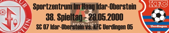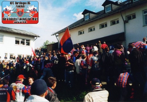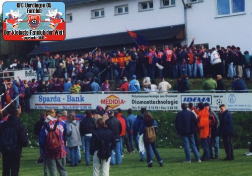 VORGESCHICHTE: Am 13. Juni 1999 war es soweit - nach einen 1:1-Unentschieden gegen den FC St. Pauli stand der KFC Uerdingen 05 nach 28 Jahren Profifußball als Absteiger in die Regionalliga West-Südwest fest. Ausgerechnet die anstehende Saison 1999/2000 wurde zur Qualifikationssaison für die Neustrukturierung der Regionalligen. Dies bedeutete, dass der KFC mindestens den 11. Platz erreichen musste, um nicht direkt wieder abzusteigen. Der Umbruch nach dem Abstieg war schwierig, so dass der KFC schließlich seit dem 33. Spieltag auf einem Abstiegsplatz stand. Als Preußen Münster am 36. Spieltag in der 88. Minute dem KFC das 2:2 einschenkte hatten die Uerdinger es verpasst, bis auf 1 Punkt an den SC Paderborn auf Platz 11 heranzurücken. Am 37. Spieltag konnten die Uerdinger jedoch mit einem 1:0-Heimsieg über die verhassten Leverkusener noch einmal Hoffnung schöpfen. Vor dem finalen Spiel war man bis auf 2 Punkte an den 11. Platz herangerutscht. Gleich 3 Vereine wiesen 45 Punkte auf - nur getrennt durch das Torverhältnis. Das dramatische Finale stieg beim bereits als Absteiger feststehenden Sportclub Idar-Oberstein. Mit 10 Fanbussen und zahlreichen Pkw machten sich die Blau-Roten Anhänger auf den Weg nach Südwesten, so dass mehr als 1.000 der 1.700 Zuschauer im “Sportzentrum” Im Haag auf Seiten der Uerdinger waren. Der “Torminator” Daniel Teixeira erzielte in der 84. Minute sein 2. Tor zum ungefährdeten 4:1-Sieg für den KFC - und kaum einer ahnte wie wichtig dieses Tor war. Nach dem Abpfiff herrschte bei den KFC auf dem Rasen und vor dem Vereinsheim Ungewissheit: Hatte es gereicht? Dann verbreitete sich schließlich die Nachricht wie ein Lauffeuer: Der KFC Uerdingen 05 hat die 11. Platz erreicht und damit die Qualifikation für die neue Regionalliga Nord geschafft! Und das alles nur aufgrund eines Tores. Drei Mannschaften hatten 48 Punkte und ein ausgeglichenes Torverhältnis auf dem Konto. Der KFC mit 52:52 Toren war gerettet; SV Elversberg mit 49:49 Toren und der SC Paderborn (vor dem Spieltag noch auf dem 10. (!) Platz) mit 47:47 Toren waren abgestiegen. Freudetrunken kehrten die meisten der KFC-Fans nach Krefeld zurück und empfingen später die Mannschaft zur Nicht-Abstiegs-Feier in der Grotenburg.