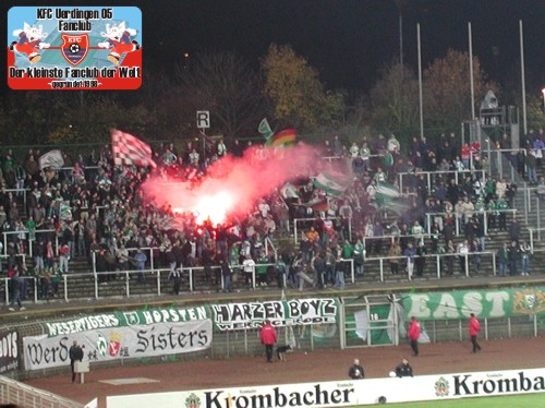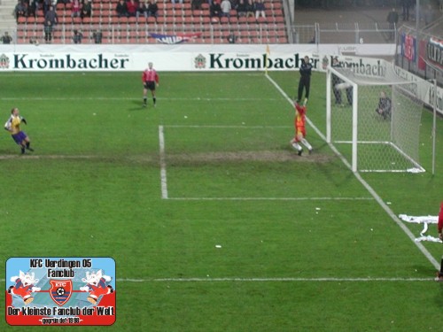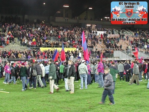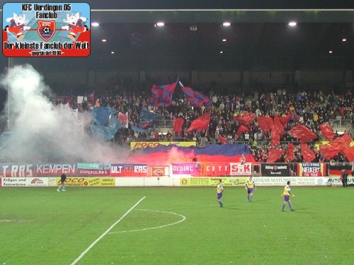 VORGESCHICHTE: Nach dem viel beachteten 1:0-Sieg in der 1. Pokalrunde gegen Energie Cottbus kam in der 2. Pokalrunde der nächste Bundesligist in die Grotenburg: Der SV Werder Bremen. Trotz der eindeutigen Verteilung der Favoriten- und Außenseiterrolle hofften die KFC-Fans auf eine zweite Sensation. Auf dem Weg zum Pokalsieg 1985 hatte der damalige FC “Bayer” 05 Uerdingen ebenfalls die Bremer in der Grotenburg bezwingen können (2:1). ”Macht’s wie anno dazumal - und holt über Bremen den Pokal!” lautete das Motto. Es klappte und mit dem Sieg im Elfmeterschießen vor ca. 10.000 Zuschauern brach eine Welle der Euphorie aus. “Verlaat versemmelt - Jetzt träumt ganz Krefeld von Berlin” - so der Express am Tag darauf in seiner Ausgabe.